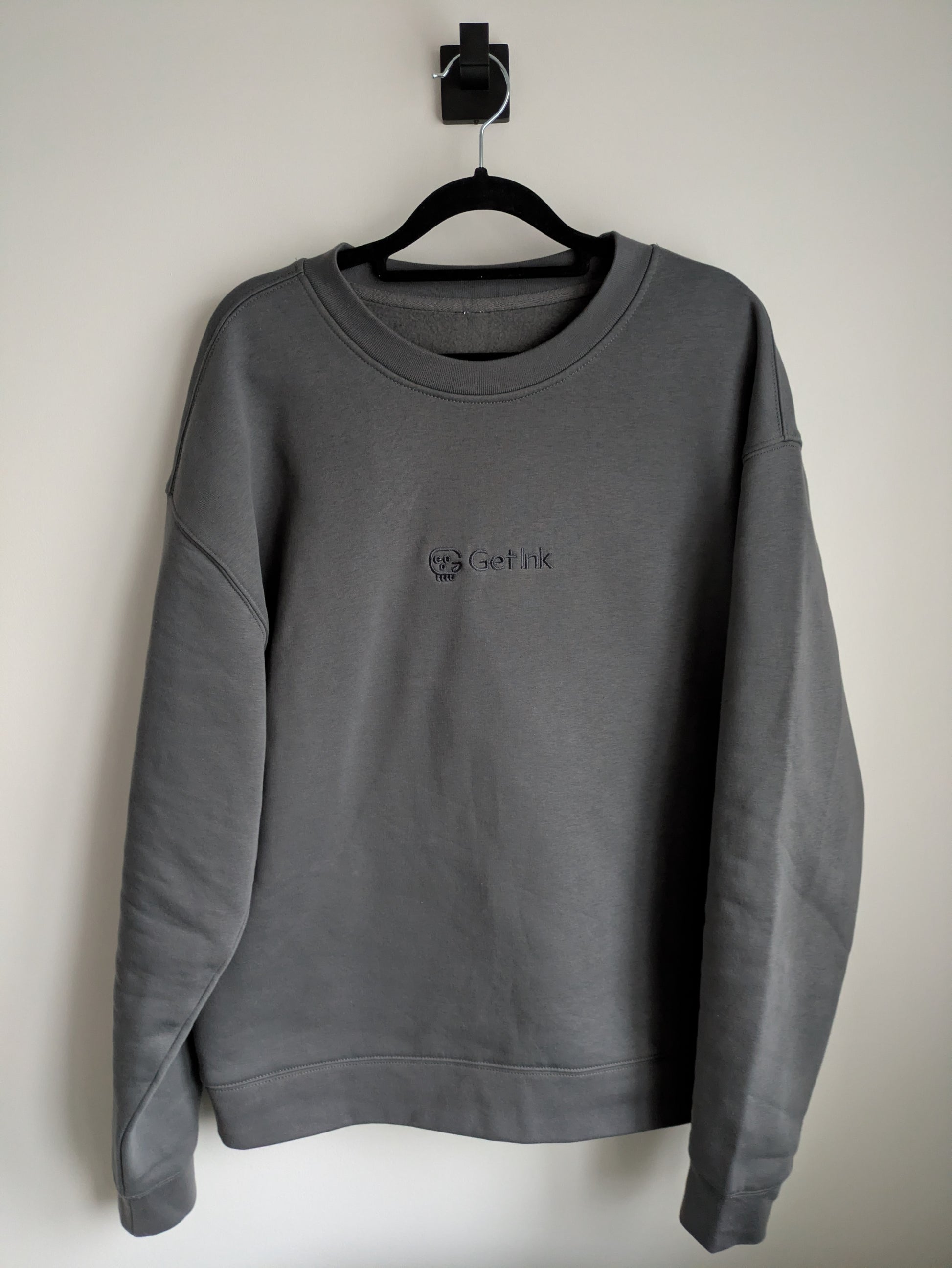 Pullover crew design, drop shoulder, crew neck, and sleeve cuff ribbing in a 320 GSM fabric blend.