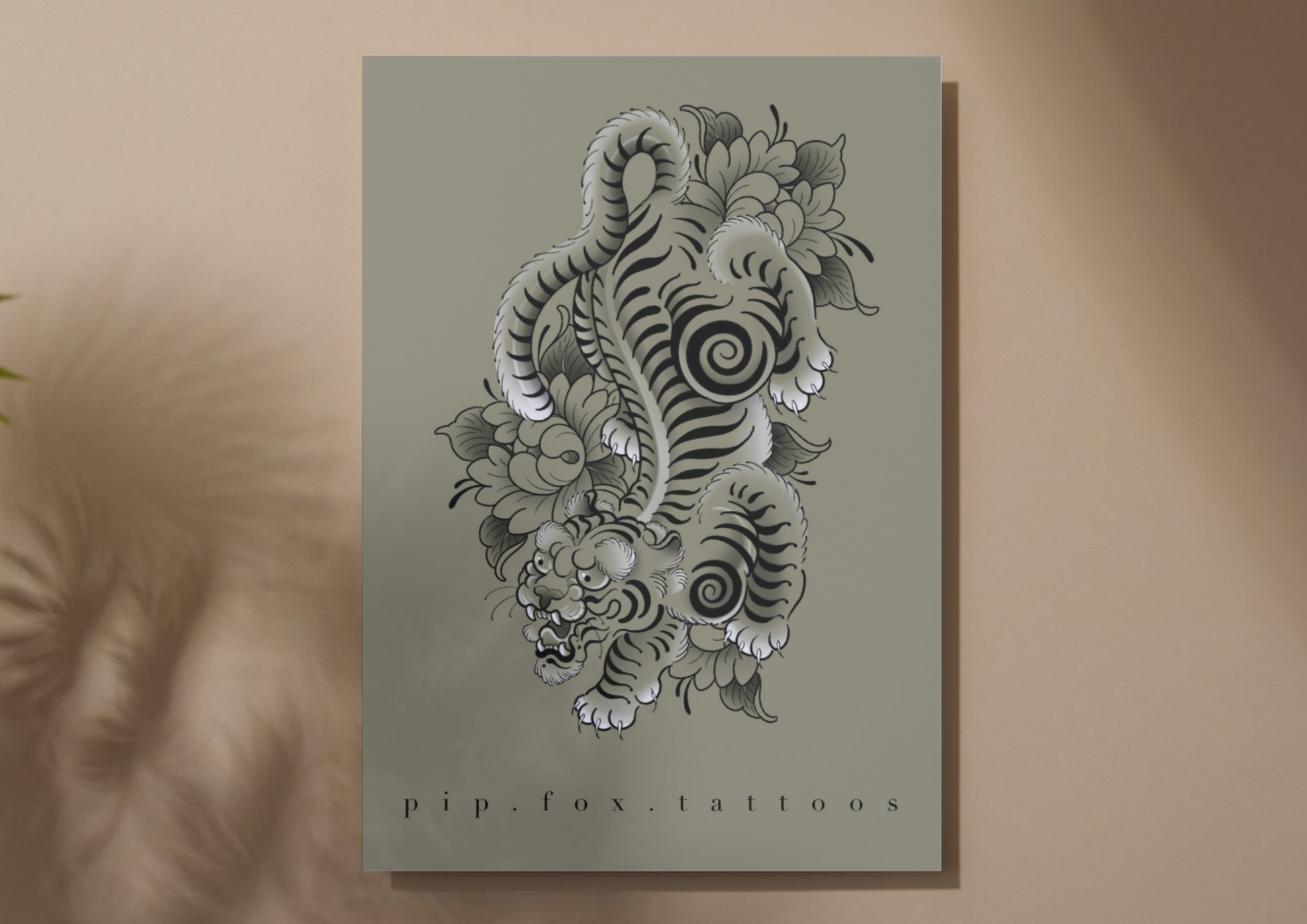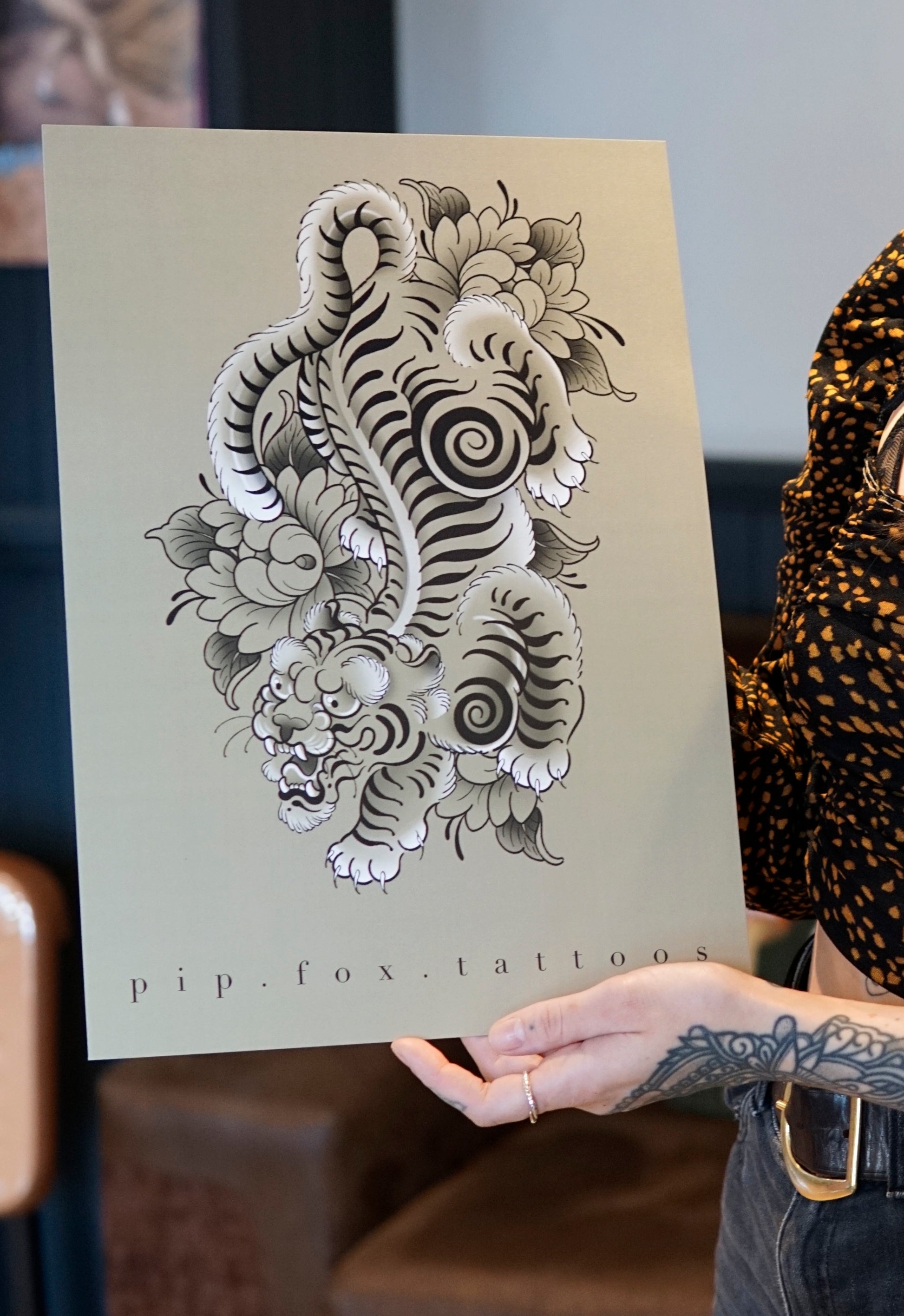 Tibetan tiger print designed by Pip Fox (@pip.fox.tattoos)